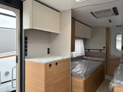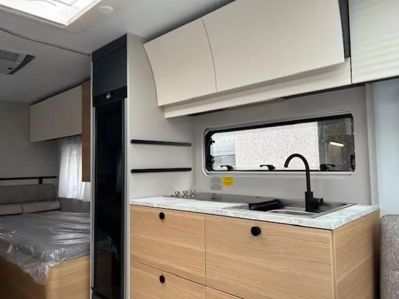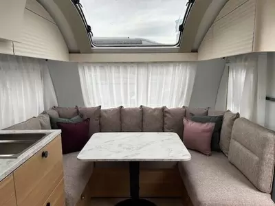 In de praktische rondzit waarmee de caravan is uitgerust, kunt u genieten van heerlijke maaltijden en gezellige avonden. De keuken is in het midden van de caravan gemonteerd. Er is een boiler aanwezig, die u van warm water voorziet.