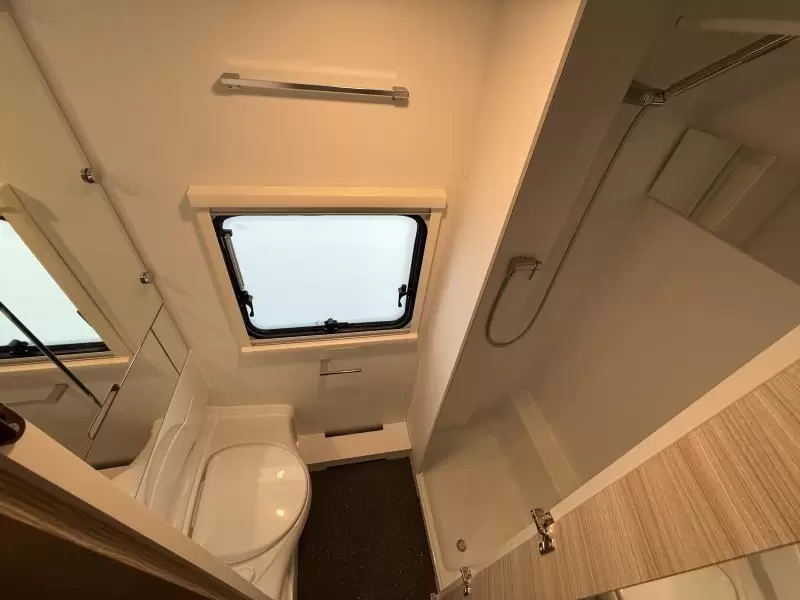 Tijdens de warmste dagen blijft het binnen aangenaam koel door de airco en het grote dakluik. De ingebouwde vloerverwarming zorgt voor een heerlijk warme vloer en voeten.