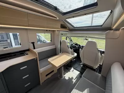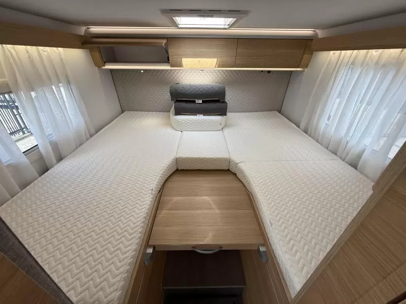 Door de hordeur, waarmee deze camper is uitgerust, houdt u vliegen en andere insecten buiten de deur. Graag brengen wij nog de vaste afvalwatertank, de indirecte verlichting en de leeslampjes onder de aandacht, die de vrijheid van het camperen nog eens extra benadrukken.