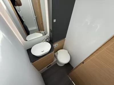 De aparte bedden waarmee de camper is uitgerust bieden een ruime slaapplek aan 2 personen. U kunt in deze camper genieten van een uitstekende nachtrust dankzij de lattenbodems en de traagschuimmatrassen op de bedden. Deze camper beschikt over een badkamer. Hierin bevindt zich een wastafel en ingebouwd cassettetoilet. Wilt u zich onderweg opfrissen? Dat kan gezien de camper voorzien is van een douchecabine.