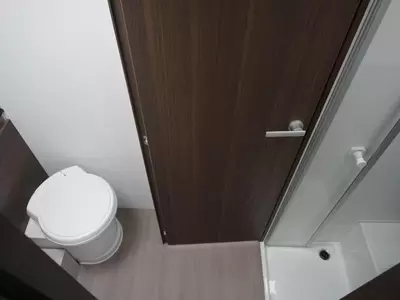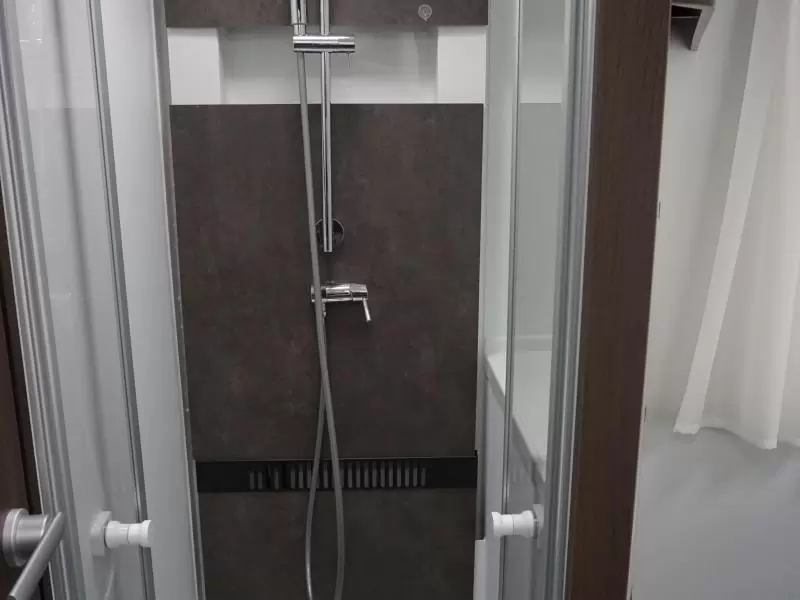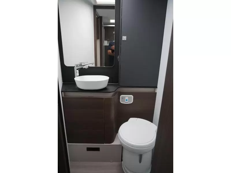 Het queensbed dat vrijstaat van de wanden geeft het gevoel van luxe en ruimte. In de badkamer vindt u een wastafel om u op te frissen, alsmede een ingebouwd cassettetoilet. In de camper kunt u ook douchen. Er bevindt zich een doucheruimte naast het slaapgedeelte.