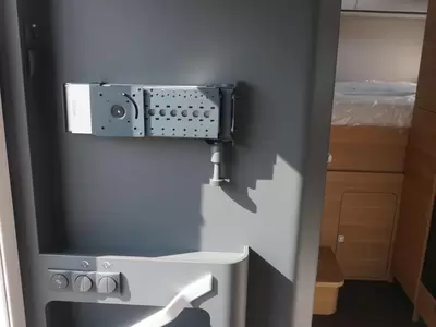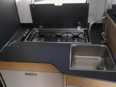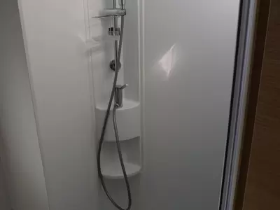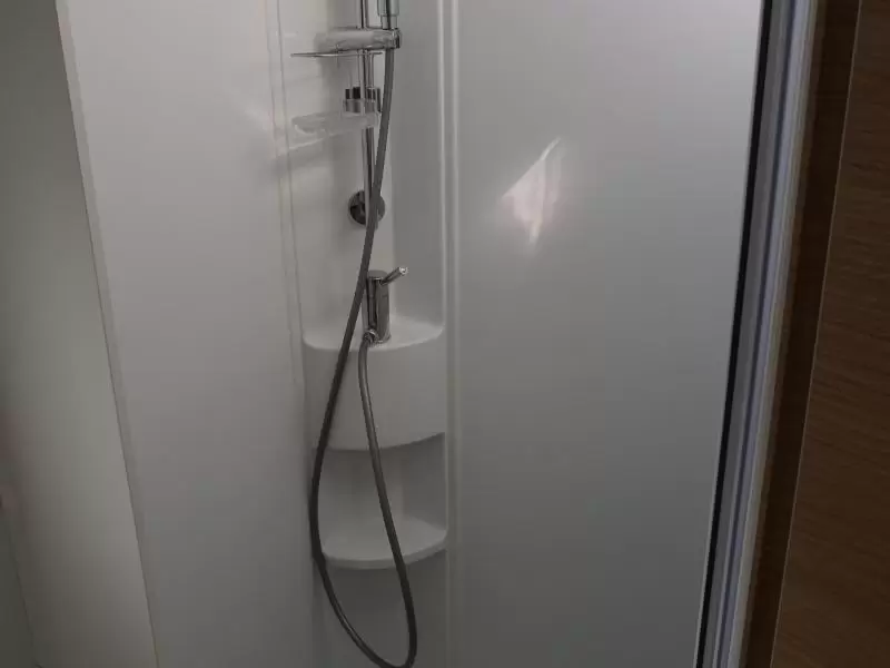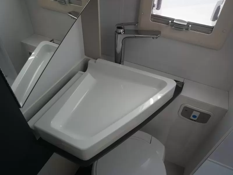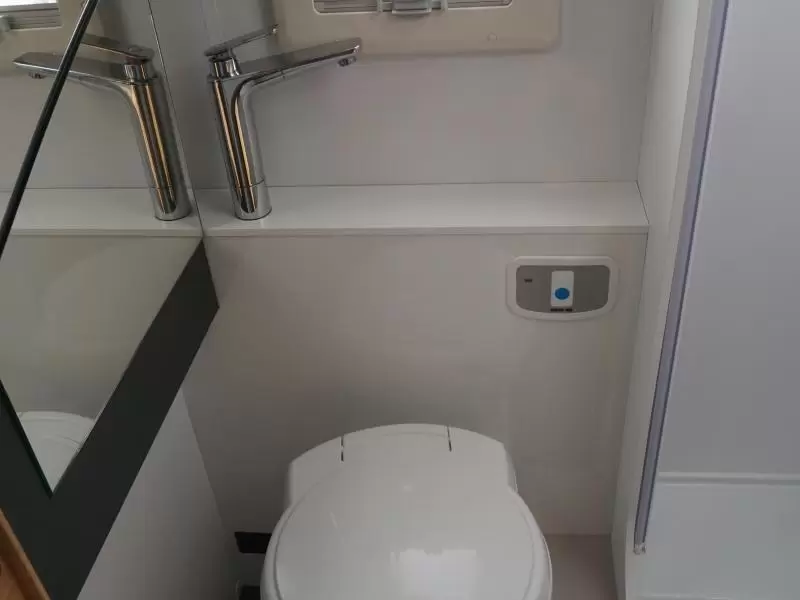 Het hefbed bespaart enorm veel ruimte en biedt plaats aan 2 personen. Behalve een cassettetoilet heeft de badkamer ook een wastafel, waar u zich heerlijk op kunt frissen. Wilt u zich onderweg opfrissen? Dat kan gezien de camper voorzien is van een douchecabine.