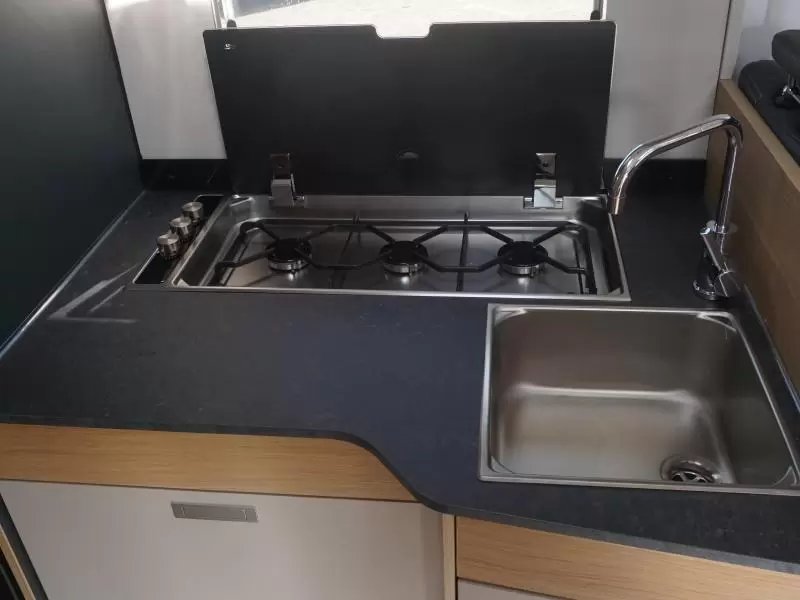Om gezellig samen te kunnen zitten, eten en drinken is de camper voorzien van een praktische standaardzit. Adria heeft de luxe uitgevoerde keuken van deze camper onder andere voorzien van een afzuigkap voor de afvoer van kookluchtjes en overtollige warmte. Er is een boiler aanwezig, die u van warm water voorziet. Om uw etenswaren op te bergen is er een koelkast (142 liter) met vriescompartiment ingebouwd.