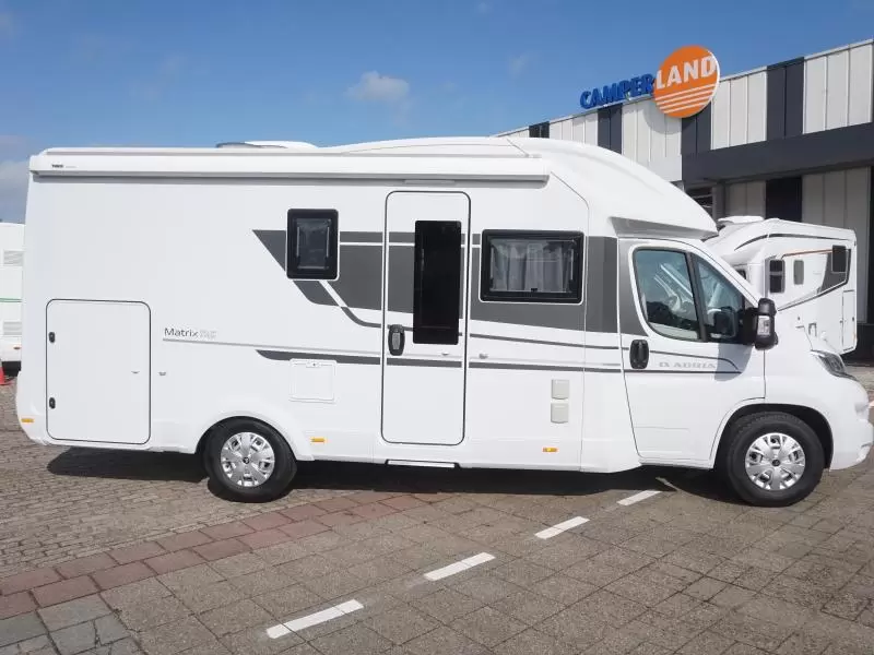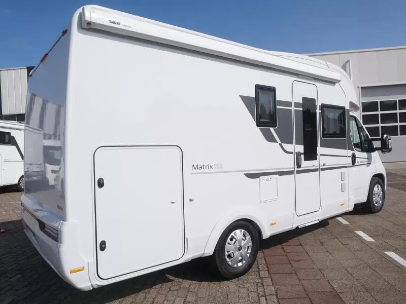 Deze Adria Matrix Axess 600 SP uit 2023 is een praktische camper die een slaapplaats biedt aan 4 personen. Heel veel daglicht en een heerlijk gevoel van ruimte beleeft u bovendien in deze camper, dankzij het fraai geintegreerde panoramadak. Een stevige hagelbui kan het polyester dak van deze Adria camper niet deren, het is er prima tegen bestand. Deze camper heeft een laadvermogen van 1077 kilo. Hierdoor kunt u al uw vakantiebagage prima meenemen.