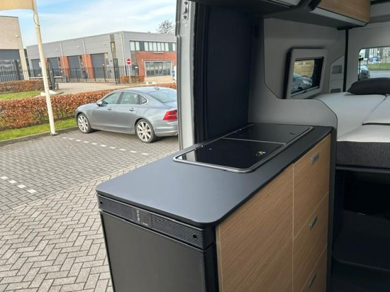 U vindt in de camper onder meer een standaardzit, die naar wens kan worden omgebouwd tot slaapgelegenheid. Het keukenblok is centraal in de camper geplaatst. De boiler, die in de camper is ingebouwd, voorziet u snel van warm water. De koelkast met vriescompartiment is ruim genoeg voor al uw etenswaren.