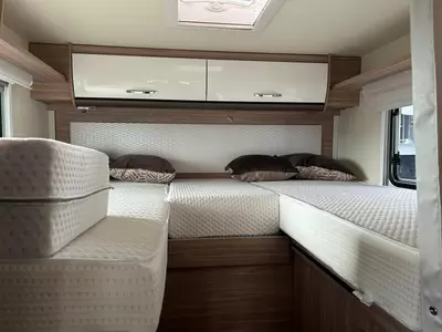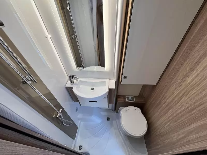 De aparte bedden bieden een makkelijke instap en een slaapgelegenheid voor 2 personen. U kunt zich heerlijk opfrissen bij de wastafel in de badkamer. Daar is ook een cassettetoilet ingebouwd. Er is bovendien een doucheruimte in de camper, zodat u van uw eigen douche gebruik kunt maken.
