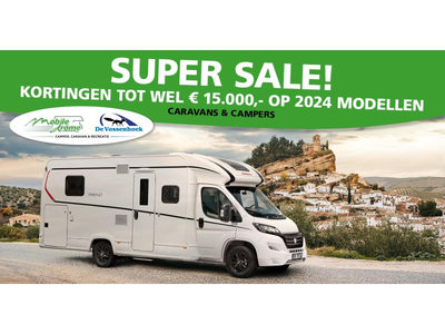 Nu met aantrekkelijk veel voordeel!Profiteer van onze Supersale actie!Normale prijs van deze camper: €94.550,-Nu met korting van €9.600,-Actieprijs: €84.950,-