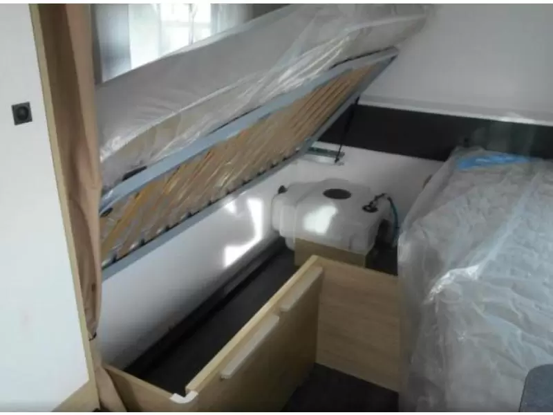 AL-KO AKS 3004 slingerkoppeling, schokbrekers, reservewiel met houder, groot serviceluik (100 x 40 cm), premium matras, groot dakluik (70 x 50 cm), hordeur, extra LED spotjes met USB aansluiting, vers watertank van 50 liter, afvalwatertank, boiler van 5 liter en douche uitrusting.