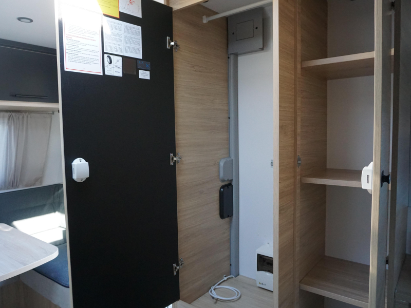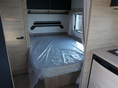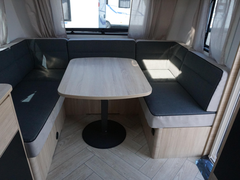 De Sport 455 beschikt over een praktisch ingedeelde binnenruimte met een gezellige rondzit (om te bouwen tot extra slaapplaats), een comfortabel vast bed, en een goed uitgeruste keuken met koelkast en gasfornuis. Dankzij de slimme opbergruimte en de moderne afwerking voelt elke centimeter doordacht aan.