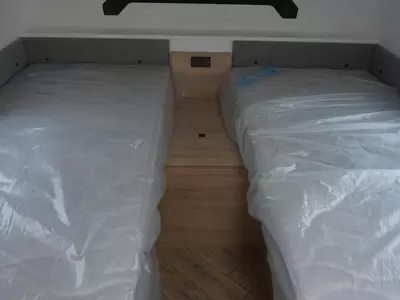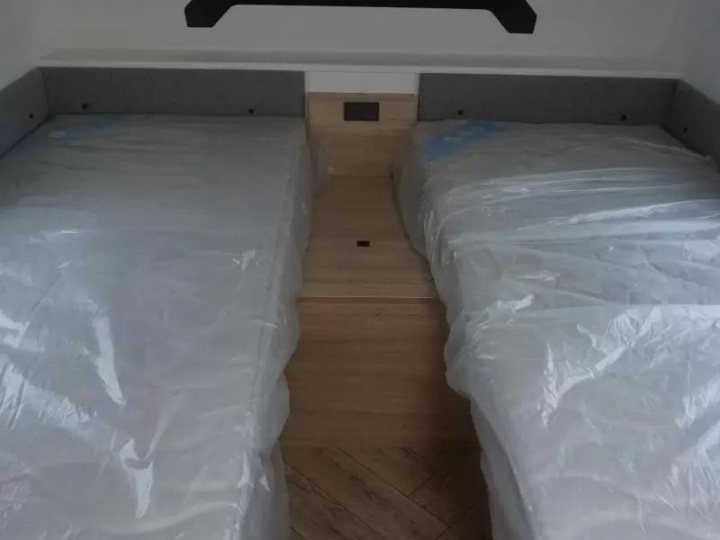 Indeling en slaapcomfort: De Sport Line 492 is uitgerust met twee eenpersoonsbedden van 85x200 cm en 85x195 cm aan de voorzijde, en een kingsize bed van 130x210 cm aan de achterzijde. Optioneel is er een slaapbank beschikbaar, wat het totaal aantal slaapplaatsen op 4 brengt. De bedden zijn voorzien van lattenbodems en traagschuimmatrassen voor optimaal slaapcomfort.