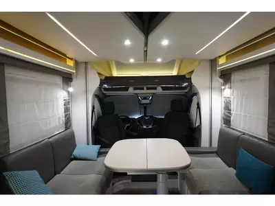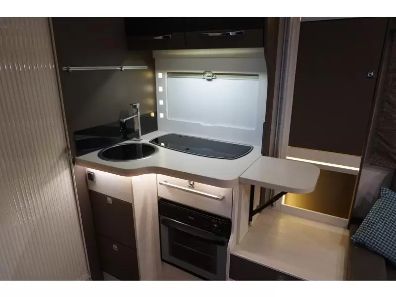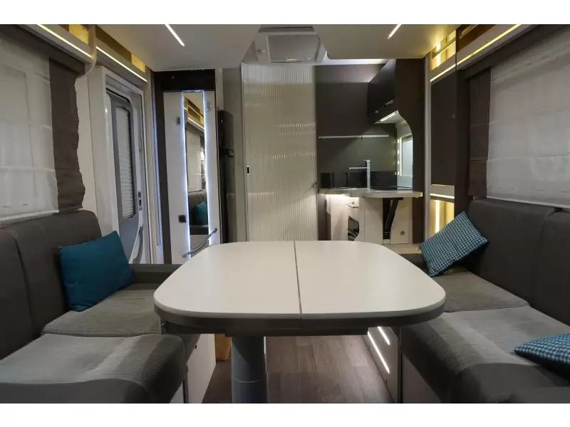 De centraal geplaatste middendinette biedt volop gelegenheid om gezellig samen te zitten. Centraal in de camper bevindt zich de complete middenkeuken. De 10 liter boiler, die in de camper is ingebouwd, voorziet u snel van warm water. De XL koelkast (175 liter) met vriesvak biedt voldoende ruimte voor heel uw voorraad.