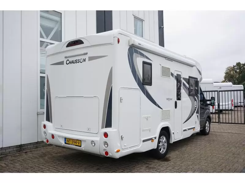 Kom deze Chausson 630 eens van dichtbij bekijken. De praktisch ingerichte kampeerwagen mag worden bestuurd met een B-rijbewijs en biedt een slaapplaats aan 3 personen. Deze camper geeft u bovendien een extra gevoel van ruimte en licht, gerealiseerd door het fraaie, zonnige panoramadak. Een stevige hagelbui kan het polyester dak van deze Chausson camper niet deren, het is er prima tegen bestand.