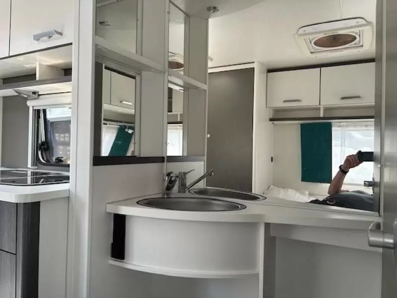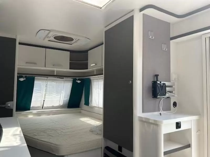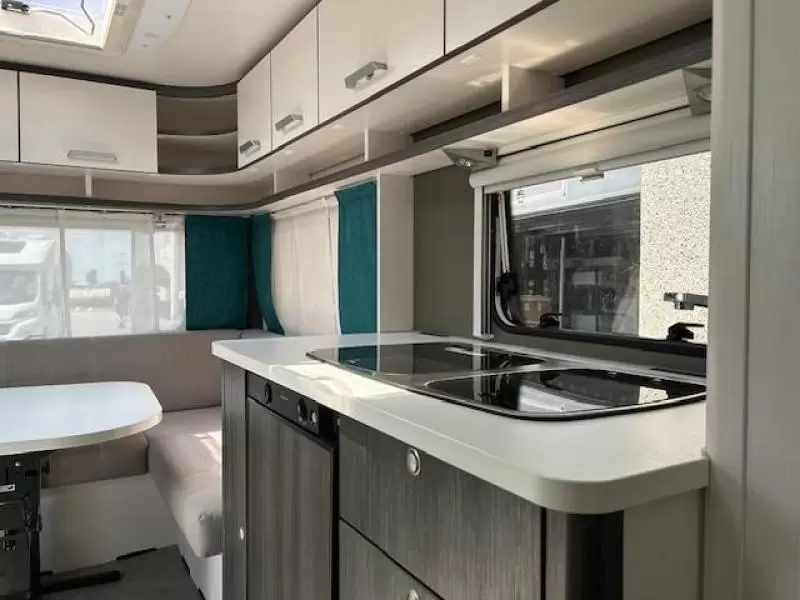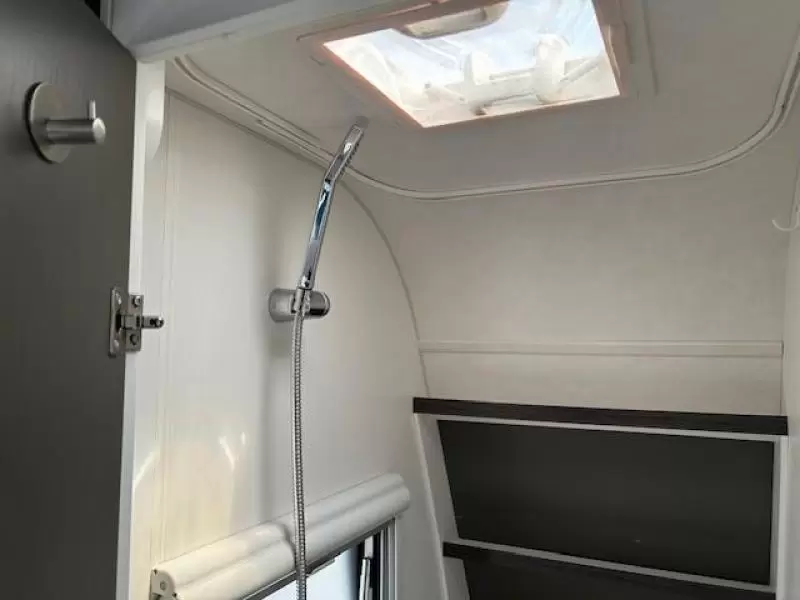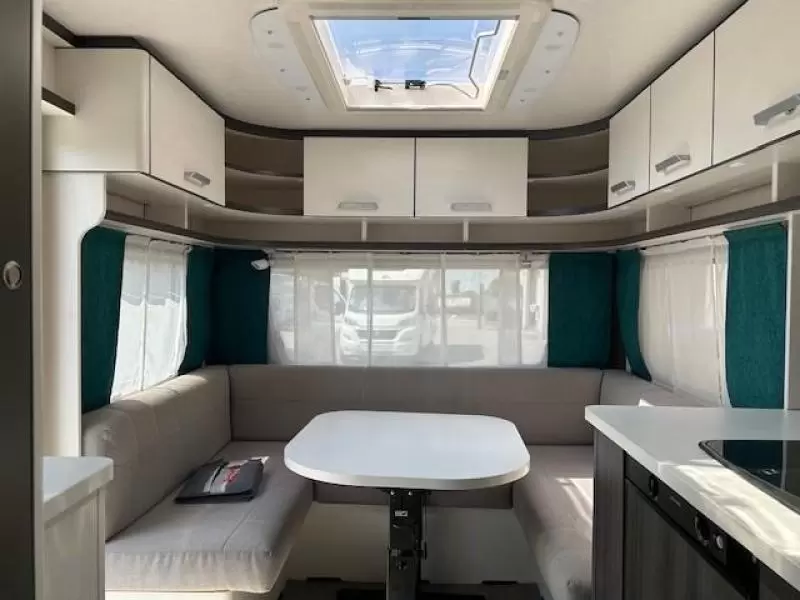 Het grote dakluik zorgt voor veel daglicht in de caravan, ook biedt het een prima ventilatiemogelijkheid. Een opvallende optie is de vloerverwarming, die ook op koudere dagen voor een comfortabel gevoel in de caravan zorgt.