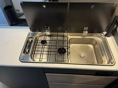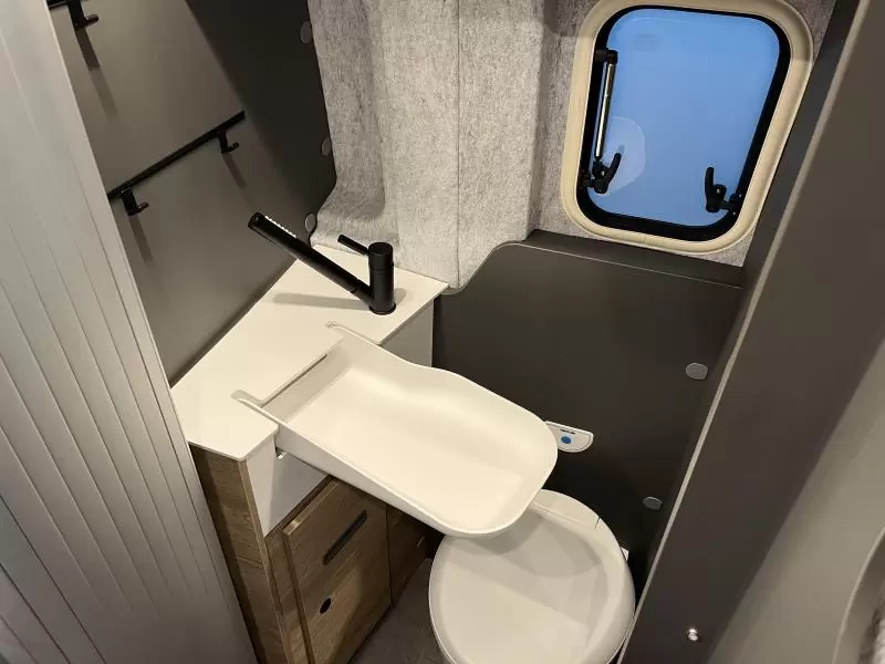 In de comfortabele badkamer van deze camper vindt u behalve een wastafel ook een ingebouwd cassettetoilet. Er is bovendien een doucheruimte in de camper, zodat u van uw eigen douche gebruik kunt maken.