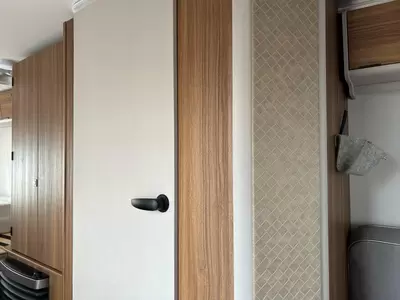 U kunt gezellig plaatsnemen in de praktische standaardzit, die ook kan worden omgebouwd tot slaapplaats. De keuken is in het midden van de caravan geplaatst. Er is voldoende bergruimte, uiteraard zijn er ook een 2-pits kooktoestel en gootsteen met kraan aanwezig. Om uw etenswaren op te bergen is er een koelkast met vriescompartiment ingebouwd.