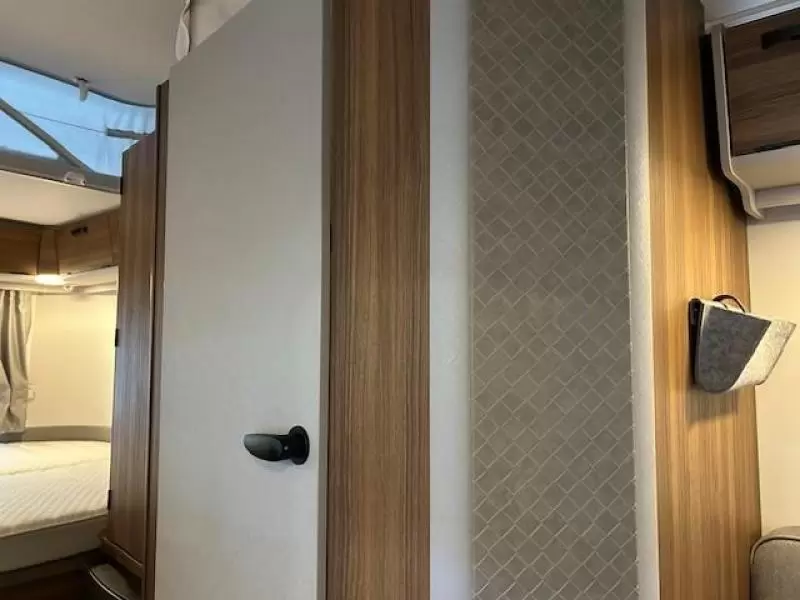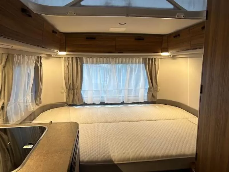Het dwars geplaatste bed biedt voldoende ruimte voor 2 personen. In de badkamer kunt u zich lekker opfrissen bij de wastafel. Verder is er ook een cassettetoilet ingebouwd.