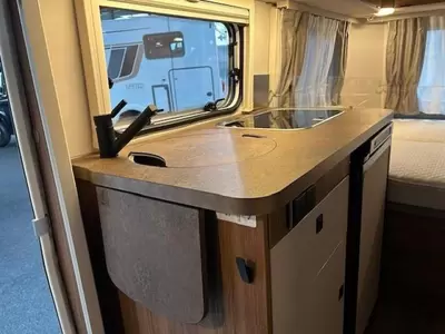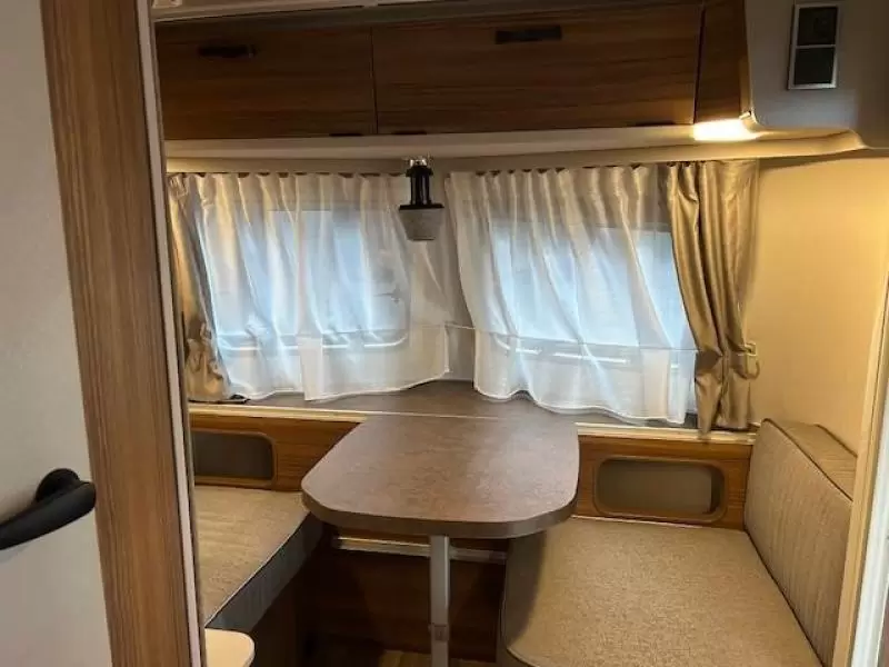 U vindt in de caravan onder meer een standaardzit, die naar wens kan worden omgebouwd tot slaapgelegenheid. Om uw etenswaren op te bergen is er een koelkast met vriescompartiment ingebouwd.
