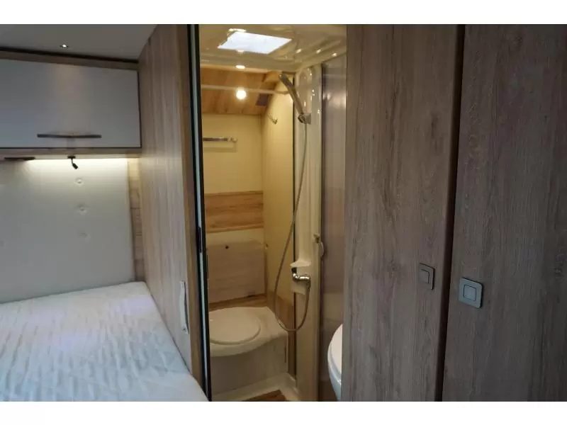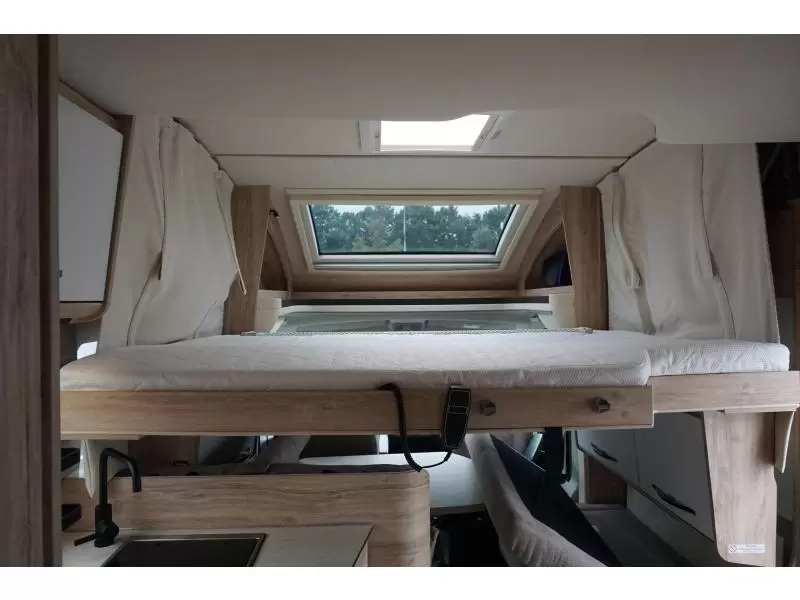 Het ruime, in de lengte geplaatste Franse bed is geschikt voor 2 personen. Het hefbed bespaart enorm veel ruimte en biedt plaats aan 2 personen. U kunt zich heerlijk opfrissen bij de wastafel in de badkamer. Daar is ook een cassettetoilet ingebouwd. Er is bovendien een doucheruimte in de camper, zodat u van uw eigen douche gebruik kunt maken.