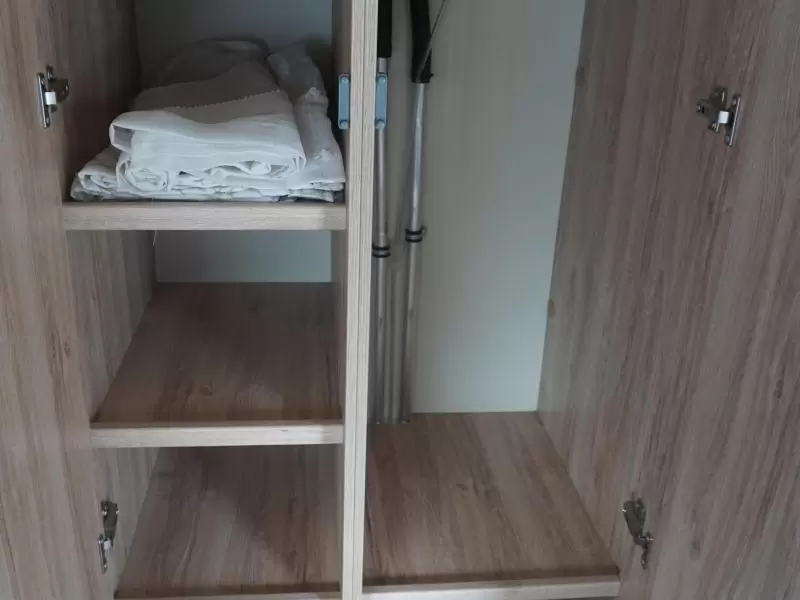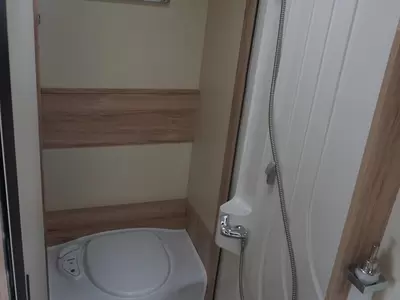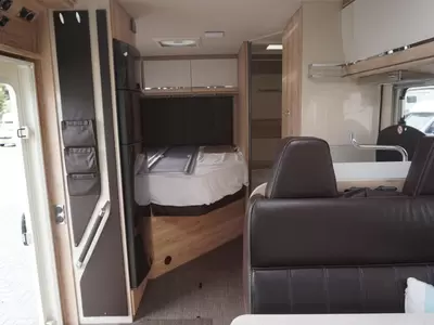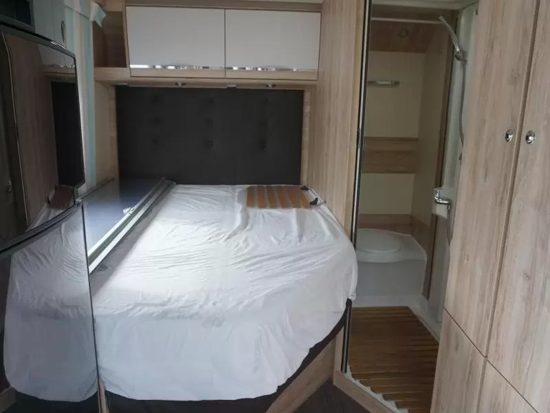 De camper is uitgerust met een Frans bed, een in de lengte geplaatst tweepersoons bed. Het hefbed bespaart enorm veel ruimte en biedt plaats aan 2 personen. In de badkamer, waar deze camper over beschikt, vindt u een ingebouwd cassettetoilet en een wastafel.