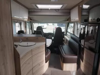 In de praktische, sfeervolle L-zit kunt u gezellig met elkaar eten en drinken. De complete keuken is in het midden van de camper geplaatst. Er is een boiler aanwezig, die u van warm water voorziet. De koelkast met vriesvak biedt voldoende ruimte voor heel uw voorraad.