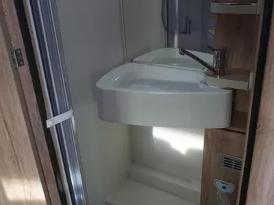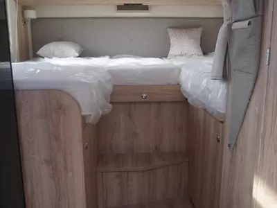 In de 2 aparte bedden heeft ieder zijn eigen slaapplek. U kunt zich heerlijk opfrissen bij de wastafel in de badkamer. Daar is ook een cassettetoilet ingebouwd. In de camper kunt u ook douchen. Er bevindt zich een doucheruimte naast het slaapgedeelte.