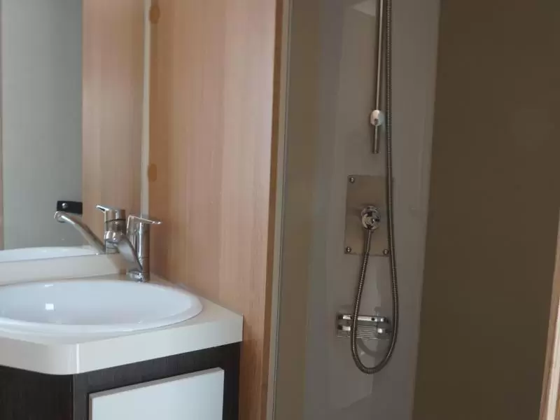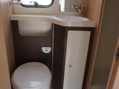 In de badkamer kunt u zich heerlijk opfrissen bij de wastafel. Verder is er ook een cassettetoilet ingebouwd. Wilt u zich onderweg opfrissen? Dat kan gezien de camper voorzien is van een douchecabine.