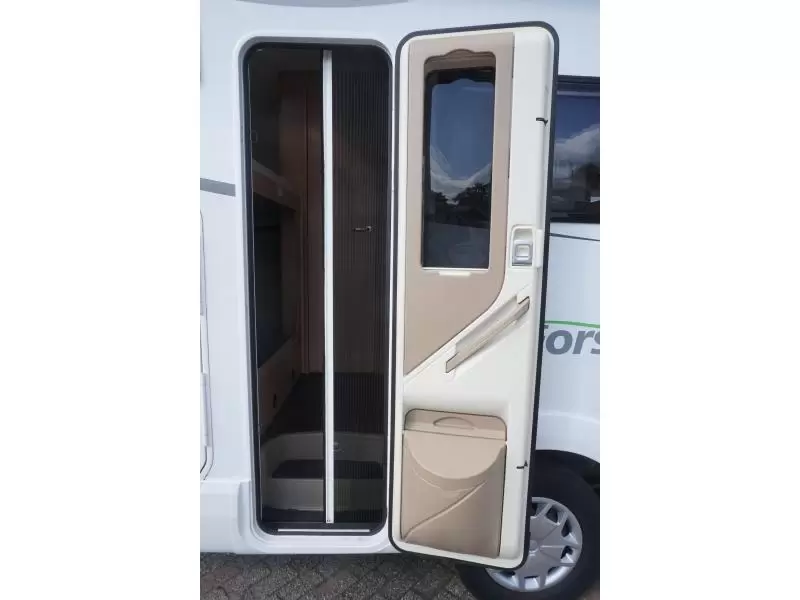 Doordat deze camper met een hordeur is uitgerust, heeft u in de camper geen last van insecten. Tenslotte blijven de vaste afvalwatertank, de antennevoorbereiding, de buitenlamp, de omvormer en de lichtmetalen velgen niet onbenoemd, met deze camper heeft u het échte gevoel van vrijheid binnen handbereik.