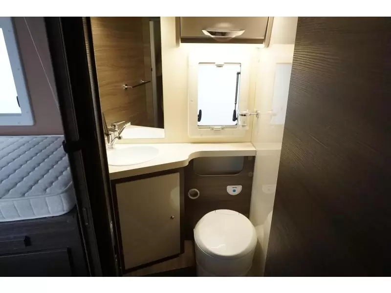 In de 2 aparte bedden heeft ieder zijn eigen slaapplek. Deze camper beschikt over een badkamer. Hierin bevindt zich een wastafel en ingebouwd cassettetoilet. Ook is de camper uitgerust met een douchegelegenheid, zodat u zich ook onderweg heerlijk kunt opfrissen.