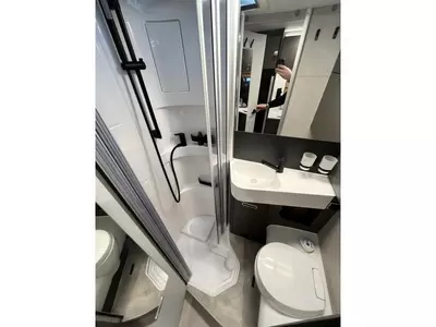 De twee enkele bedden zorgen voor een gemakkelijke instap. In de badkamer, waar deze camper over beschikt, vindt u een ingebouwd cassettetoilet en een wastafel.