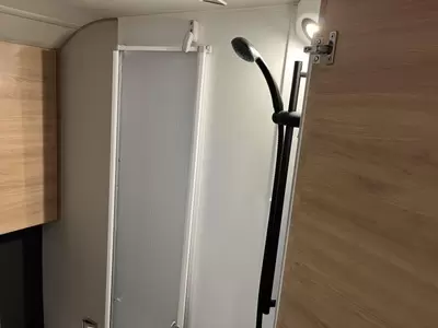 De camper is uitgerust met een Frans bed, een in de lengte geplaatst tweepersoons bed. In de badkamer, waar deze camper over beschikt, vindt u een ingebouwd cassettetoilet en een wastafel. Er is bovendien een doucheruimte in de camper, zodat u van uw eigen douche gebruik kunt maken.