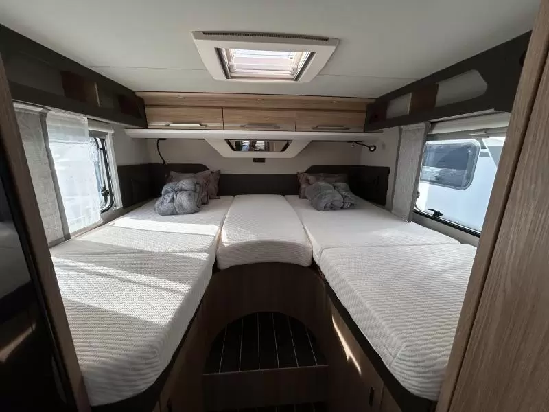 De twee enkele bedden zorgen voor een gemakkelijke instap. Deze camper beschikt over een badkamer. Hierin bevindt zich een wastafel en ingebouwd cassettetoilet. Wilt u zich onderweg opfrissen? Dat kan gezien de camper voorzien is van een douchecabine.