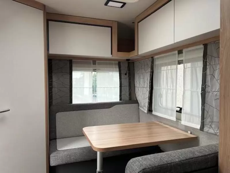 Het grote dakluik zorgt voor veel daglicht in de caravan, ook biedt het een prima ventilatiemogelijkheid. Het luchtcirculatiesysteem zorgt daarbij voor een goede verdeling van de verwarmde lucht.
