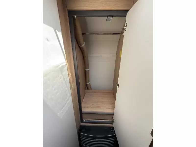 In het stapelbed, dat in de lengte is gemonteerd en daardoor goed bereikbaar is, hebben de kinderen hun eigen plekje. In het ruime, dwars geplaatste bed kunnen 2 personen slapen. Om u van een welverdiende nachtrust te laten genieten, hebben de bedden niet alleen lattenbodems, maar ook traagschuimmatrassen. De badkamer biedt wasgelegenheid in de vorm van een wastafel. Ook is er een ingebouwd cassettetoilet. Naast het slaapgedeelte bevindt zich ook de douchegelegenheid.