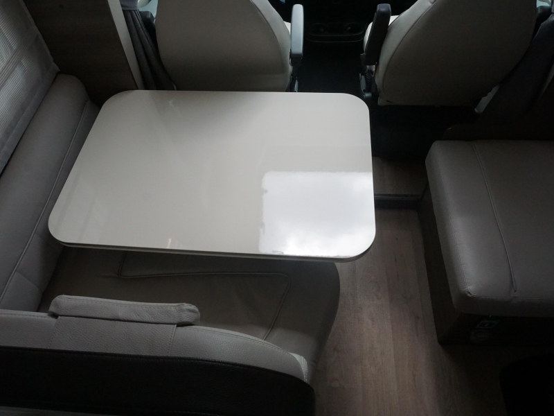 Een ideale plek om even rustig te zitten, te internetten of te spelen, wordt gevormd door de kleine zit. Door de ruime en comfortabele L-zit nodigt de camper uit voor gezellige avonden. Centraal in de camper bevindt zich de middenkeuken, uitgerust met een spoelbak, kraan en 3-pits kooktoestel. De 10 liter boiler, die in de camper is ingebouwd, voorziet u snel van warm water. De ingebouwde koelkast (142 liter) met vriesvak is uitgevoerd in een ruime uitvoering.