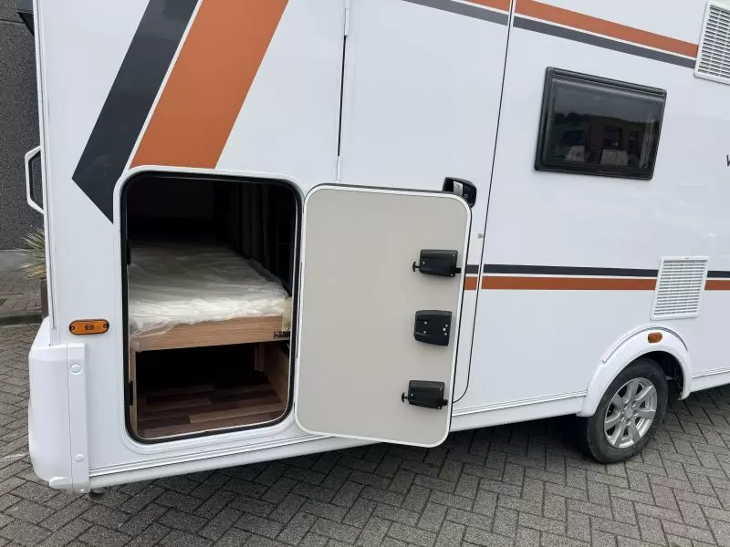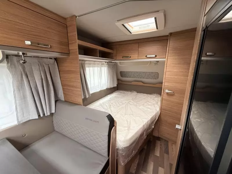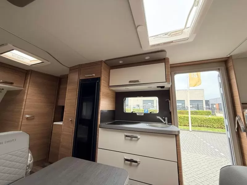 Het grote dakluik van de caravan zorgt voor extra veel lichtinval en een goede ventilatie. De vloerverwarming zorgt ervoor dat de caravan op een comfortabele wijze kan worden verwarmd.