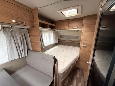 De caravan is uitgerust met een Frans bed, een in de lengte geplaatst tweepersoons bed. Uw kinderen zullen hun eigen slaapplekje in het dwars geplaatste stapelbed weten te waarderen. In de badkamer kunt u zich lekker opfrissen bij de wastafel. Verder is er ook een cassettetoilet ingebouwd.