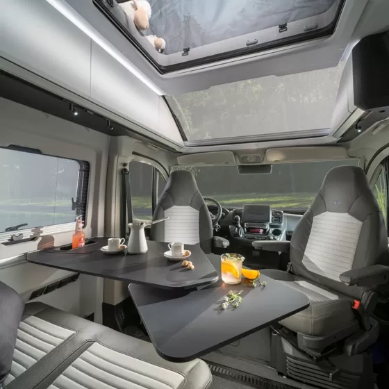 Ontworpen voor het perfecte thuis-gevoel. Een gebruiksvriendelijke en comfortabele buscamper, beïnvloed door eersteklas autostyling en een nieuw modern design.