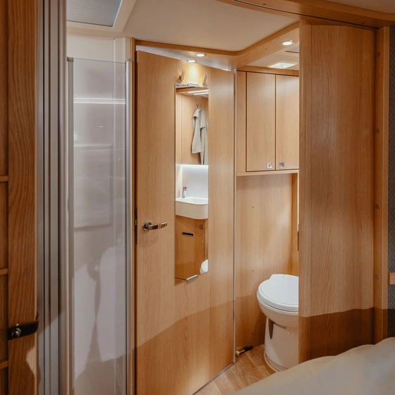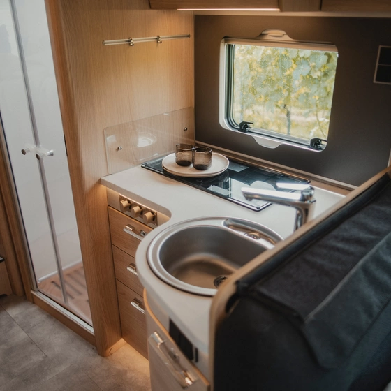 Een chique woning op vier wielen – dat is de perfecte beschrijving van dit model. Je voelt je minstens zo comfortabel als thuis. Door de zeer uitgebreide opbergmogelijkheden vind je voor al je spullen wel een plaatsje en heb je alles bij de hand.