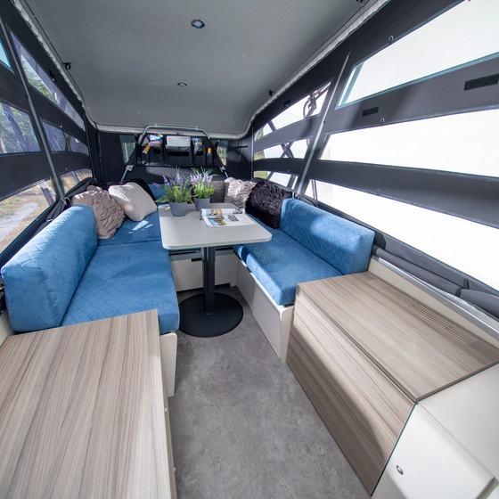 De TakeOff is een innovatieve cross-over tussen toercaravan en vouwwagen – compact onderweg, groots in gebruik. Dankzij het unieke hefmechanisme staat hij binnen 30 seconden klaar als volwaardige kampeerplek. Even pauzeren voor een koel drankje of een sanitaire stop? In een handomdraai creëer je jouw eigen comfortabele ‘coffeecorner’. Slim, snel en verrassend praktisch: de TakeOff laat elke kampeerder versteld staan.
