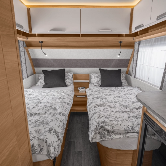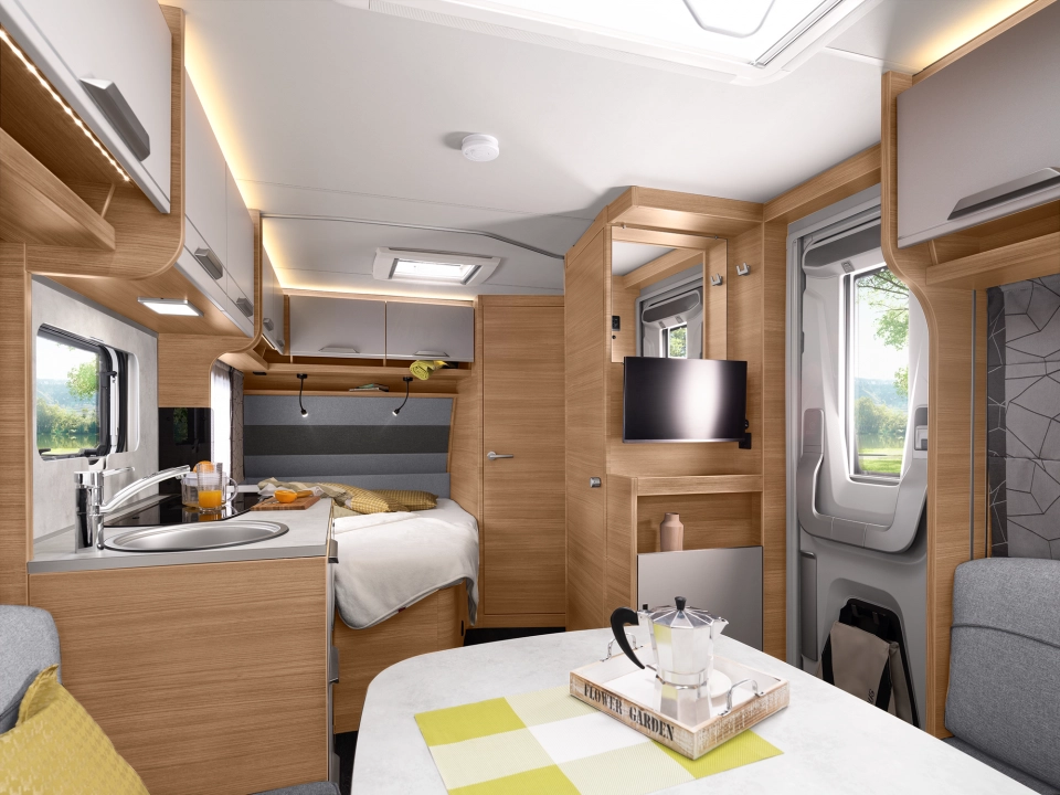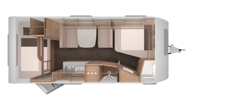 Van compact tot royaal. Van twee- tot zespersoons. Enkele bedden, dwars bed, Frans bed of stapelbed. Wat je wensen ook zijn, je vind gegarandeerd de juiste caravan indeling in het aanbod van de Knaus Sport.