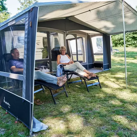 De Isabella Atlas luifel is een zeer stevige en stabiele luifel, ook bij regen en wind. Dat maakt deze luifel zo ideaal voor elke seizoenskampeerder. De Atlas is een luifel die aan de voortent wordt gemonteerd en ook op vrijwel elke Isabella voortent past. Met deze luifel creëer je een overdekt terras met volop schaduw.