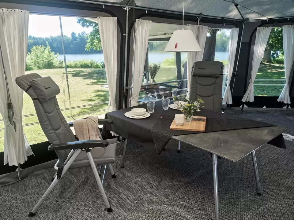 De Isabella Penta Etna heeft alles wat je maar kunt wensen van een seizoenstent. Deze ruime Isabella voortent heeft een diepte van 350 cm. Door het ontbreken van een middenstaander biedt deze royale voortent een optimale bewegingsvrijheid. Door zijn stevige constructie en unieke vijfhoekige vorm biedt deze voortent optimale stabiliteit voor een zorgeloos kampeerseizoen.